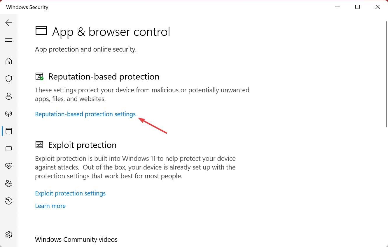 - Click on Reputation-based protection settings.