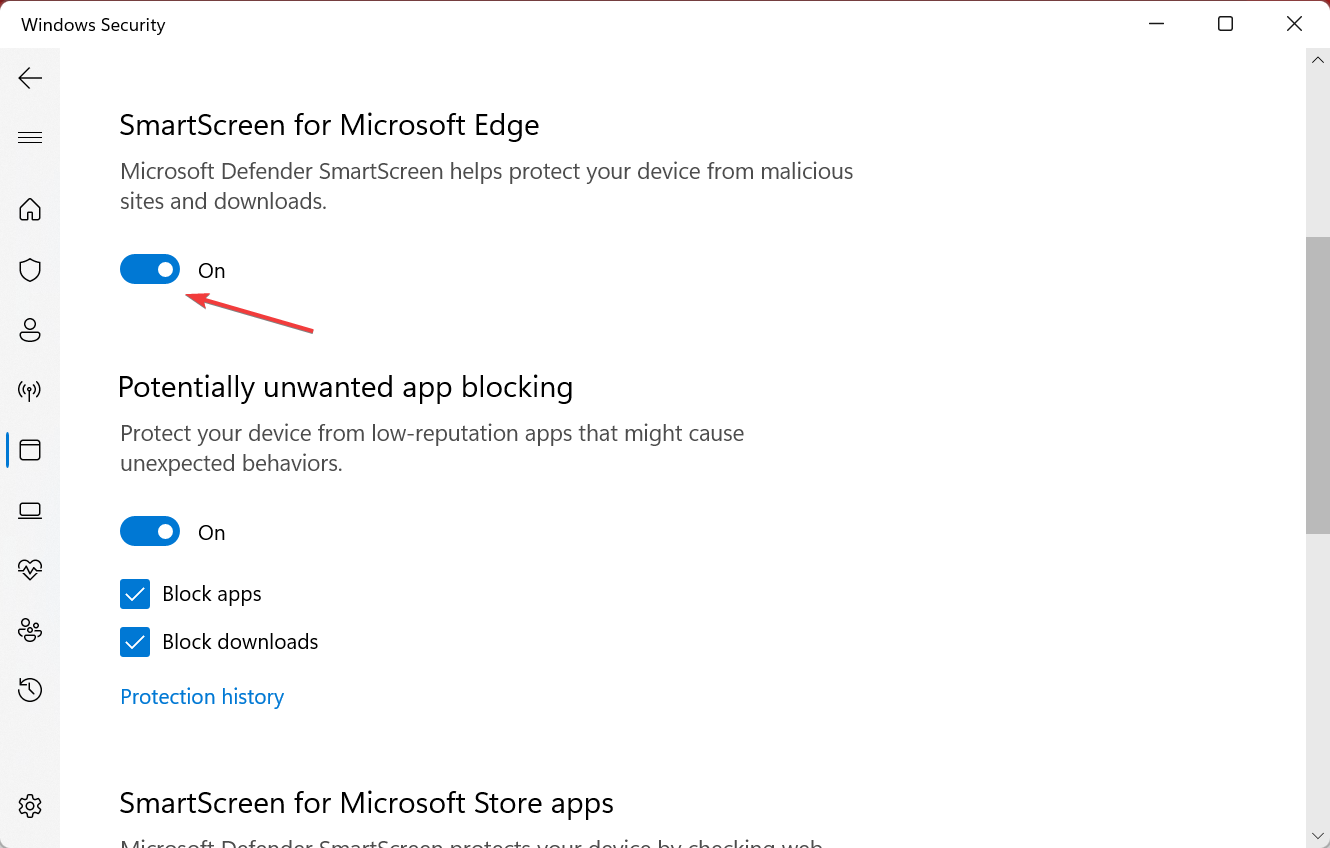 - Next, make sure that the SmartScreen for Microsoft Edge option is enabled.