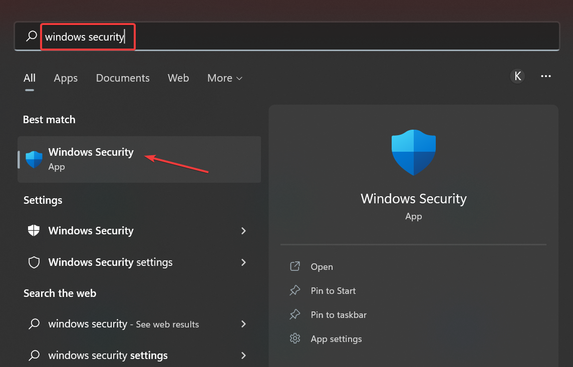 - Press Windows + S to open the Search menu, enter Windows Security in the text field, and then click on the relevant search result.