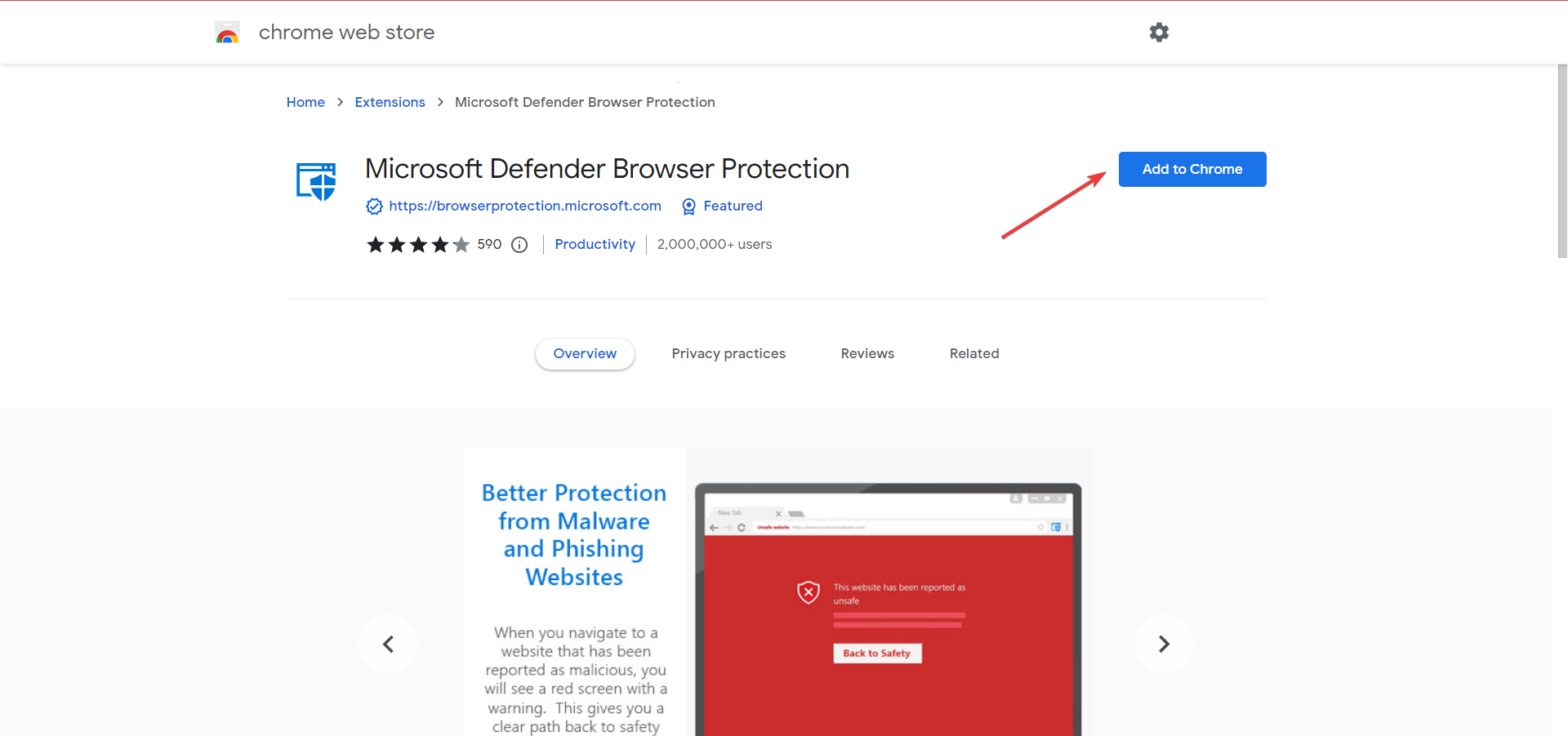 - Visit Windows Defender Browser Protection on the Chrome web store, and then click on the Add to Chrome button.
