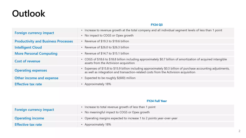 Microsoft is expecting modest yet strategic growth in fiscal year 2024’s third quarter. If we talk about all operational segments, there is a projected increase of less than 1 percent point without significant changes to the current cost structure.