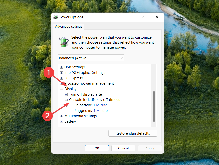 Modifying the Windows Registry unlocks the Console lock display off timeout option in Windows 11, which can be configured from the Advanced Power Options settings window.