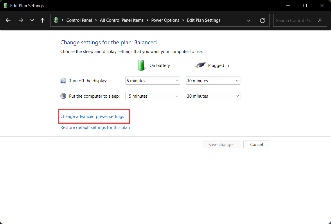 - Click the Change advanced power settings to excess the advanced settings property window.