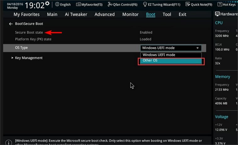- Go to the Boot section and locate Secure Boot. Set it to Enabled.