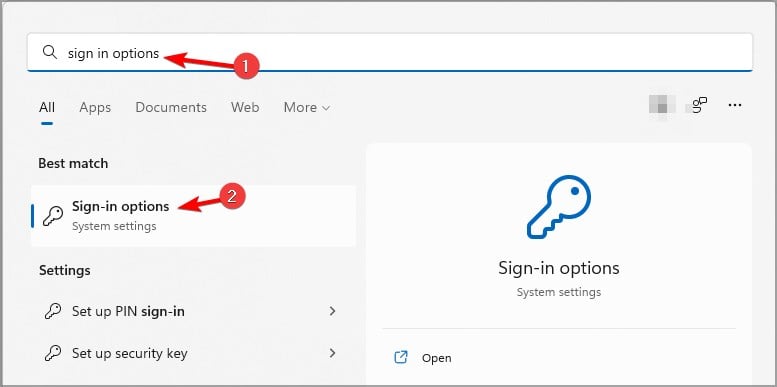 - Press Windows key + S and enter sign-in options. Select the Sign-in options from the list of results.