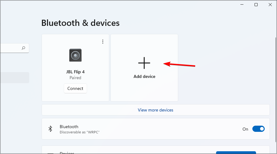- Go to the Bluetooth section and click on Add a device.