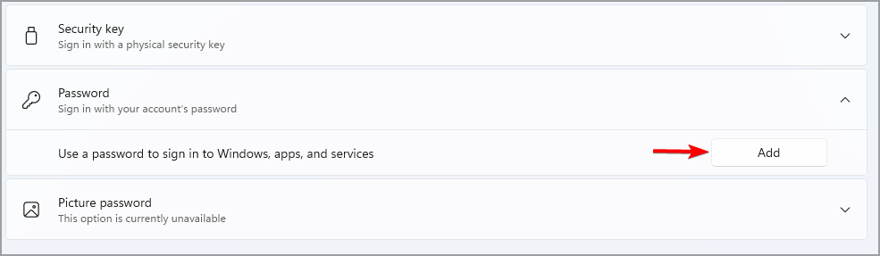 - Expand the Password section and click on Add.