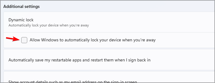 - In the Dynamic lock section, enable Allow Windows to automatically lock your device when youโre away.