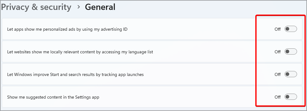 After adjusting these Windows 11 privacy settings, you’ll disable all features that are collecting personal information.