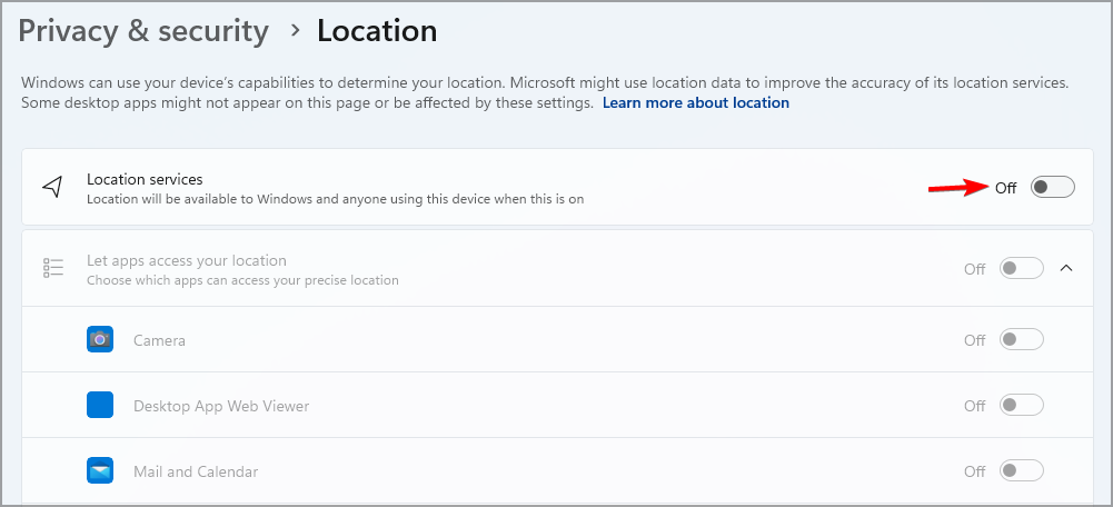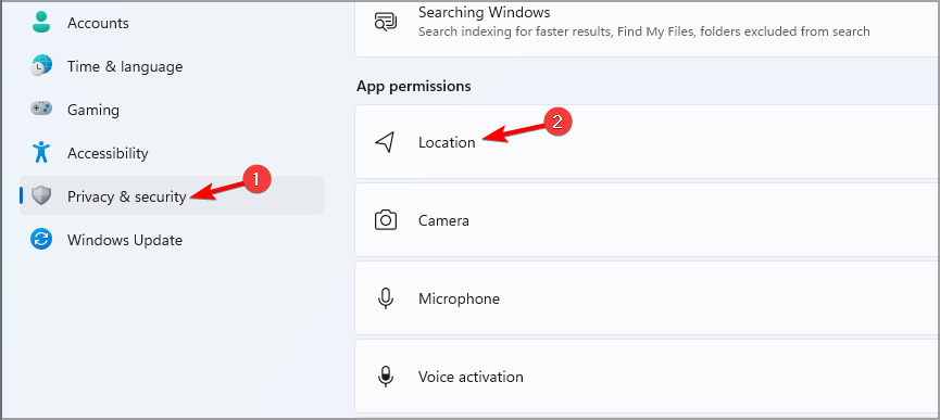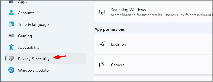 - Go to Privacy & security and select Location.