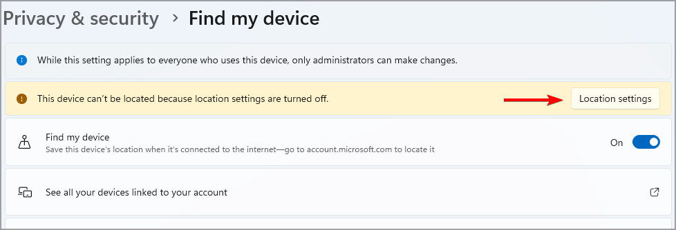 - If you see a warning message, click on Location settings.