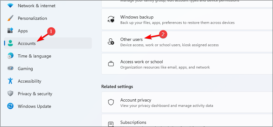- Go to Accounts and select Other users.