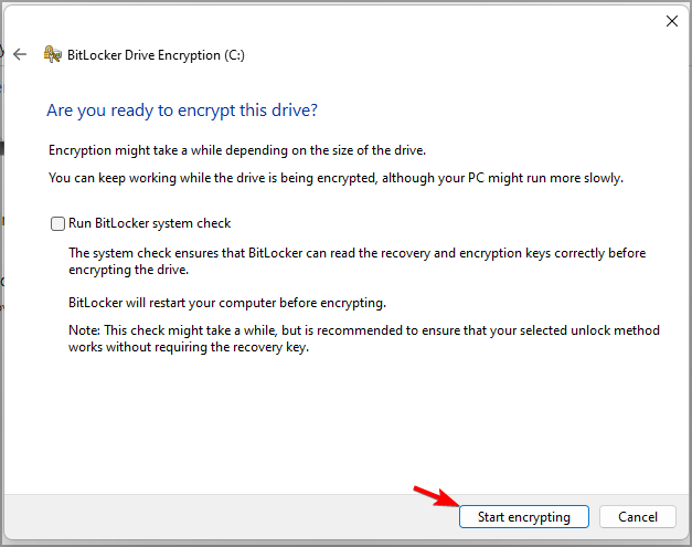 - Now click on Start encrypting and closely follow the instructions on the screen.