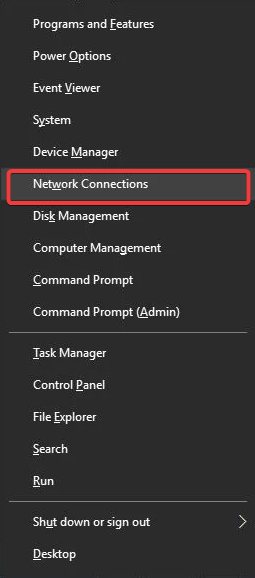 - Press Windows + X and select Network Connections from the menu.