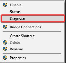 - Locate your network adapter, right-click it, and choose Diagnose.