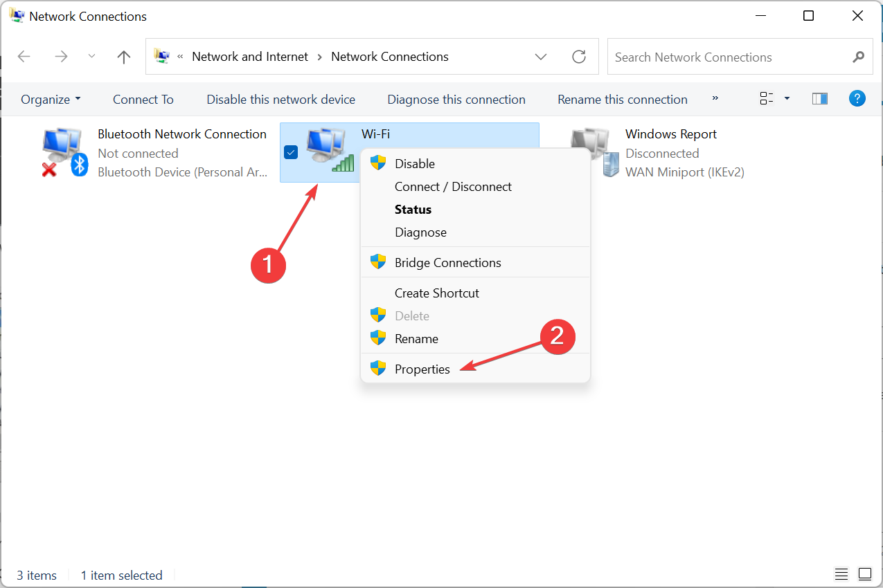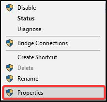 - Right-click your wireless connection and choose Properties from the menu.