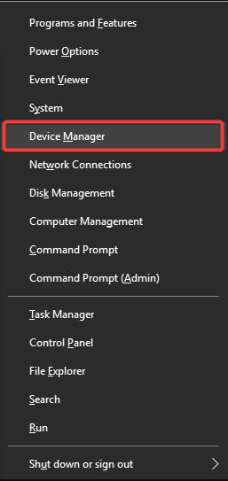 - Press Windows + X and choose Device Manager.
