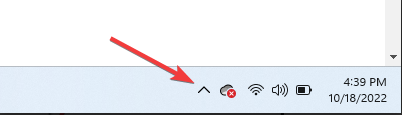 - Click on the hidden access arrow in the Taskbar.