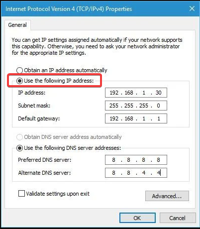 5. Set your IP address manually