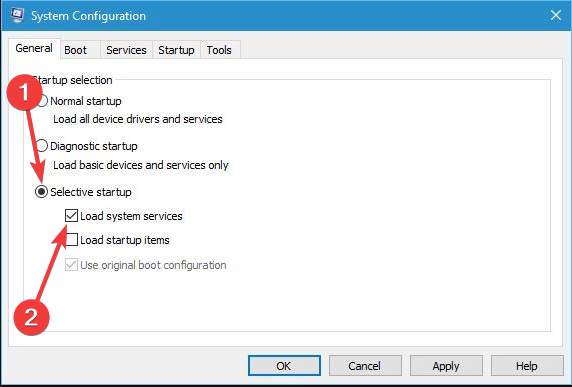 - Choose Selective startup and uncheck Load startup items.