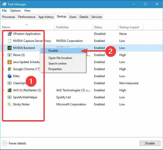 - Right-click each item on the list configured to launch at startup, then choose Disable.