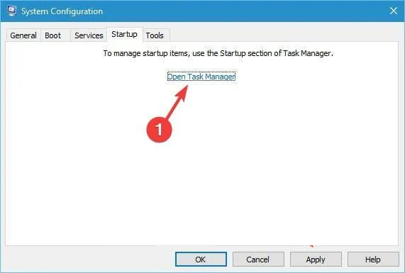 - Go to the Startup tab and click on Open Task Manager.