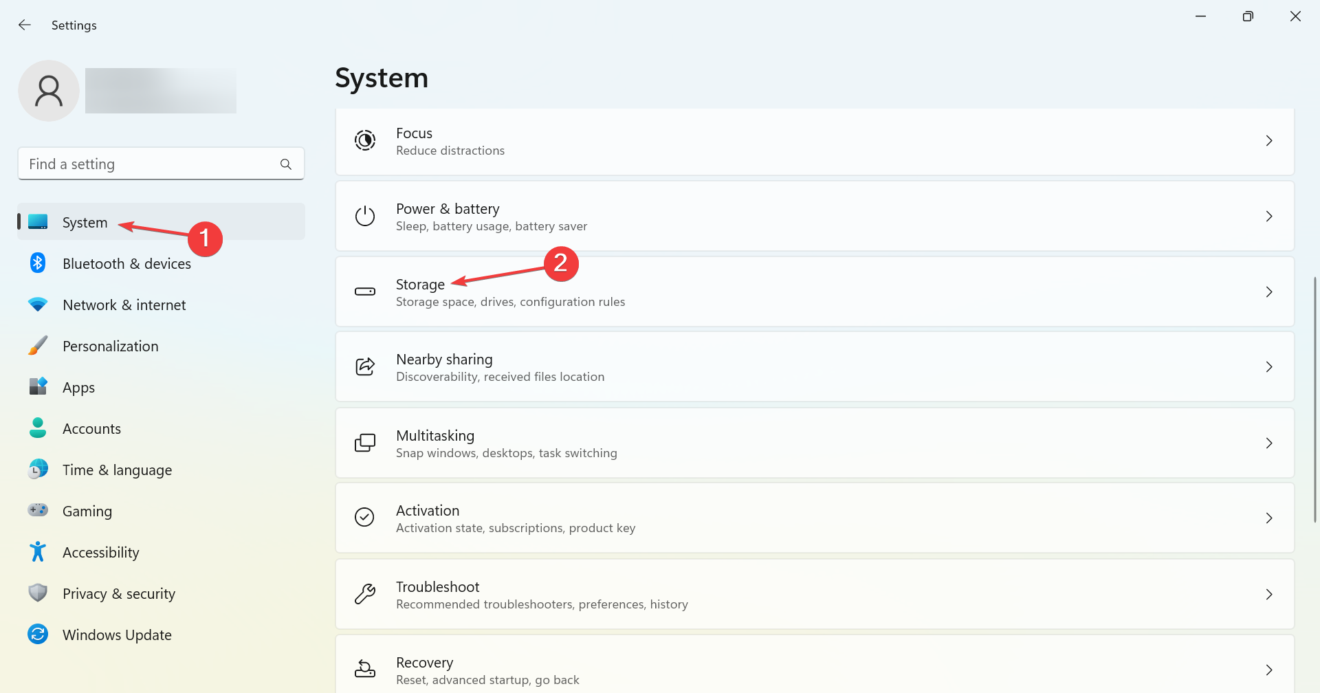 - Press Windows + I to open Settings, and click on Storage on the right in the System tab.