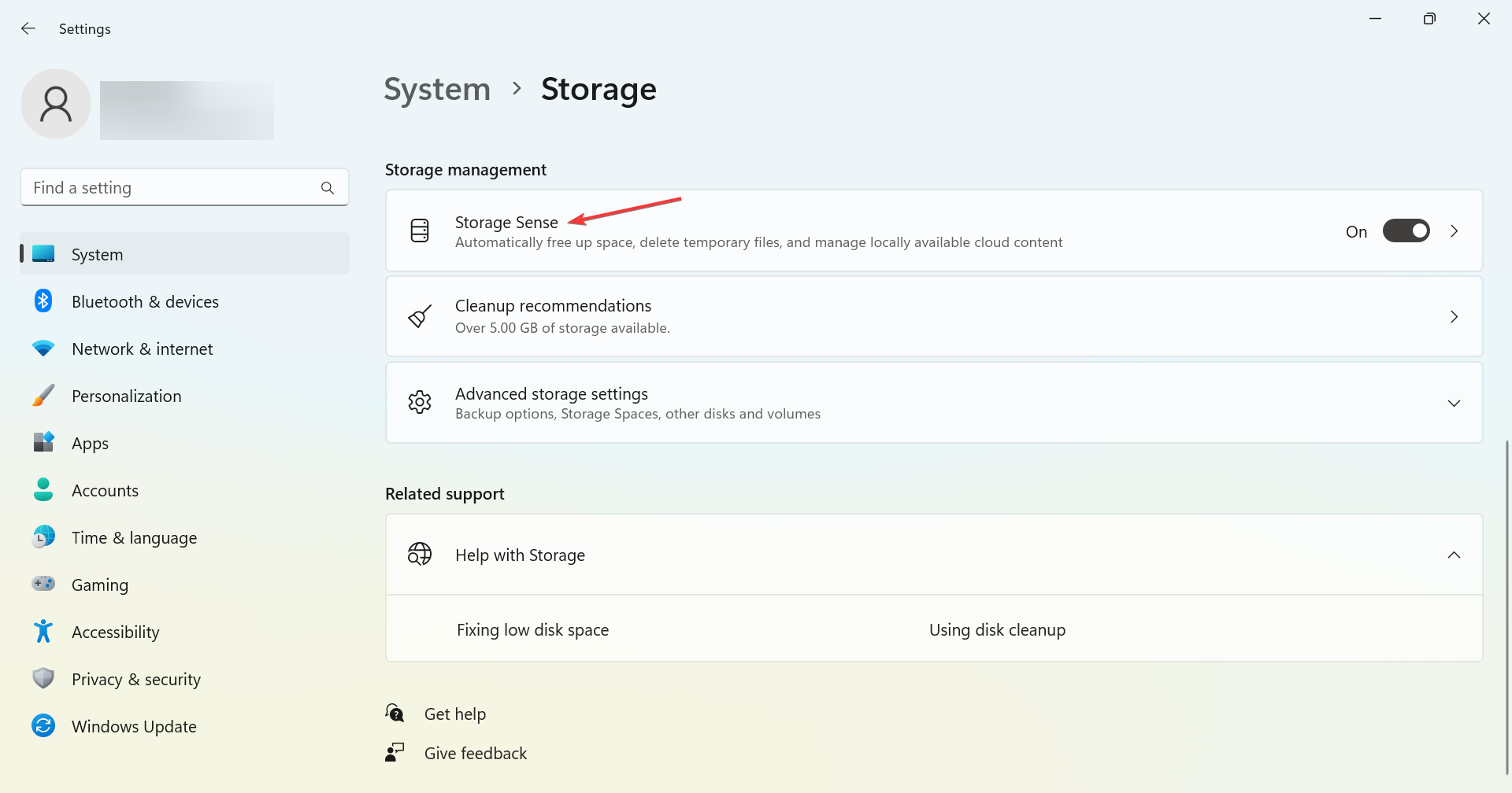 Storage Sense is a built-in Windows utility that allows users to automatically run periodic scans and clear the temporary files on the PC, including the Windows temp CAB files.