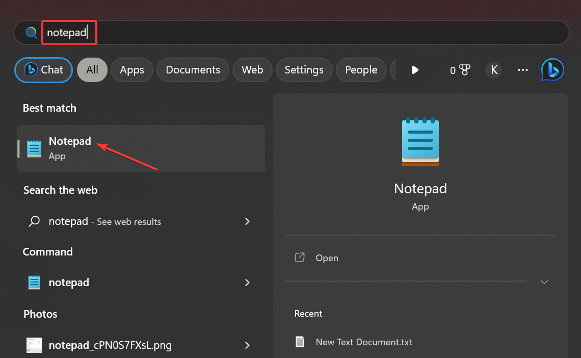 - Press Windows + S to open the Search menu, type Notepad in the text field, and click on the relevant search result.