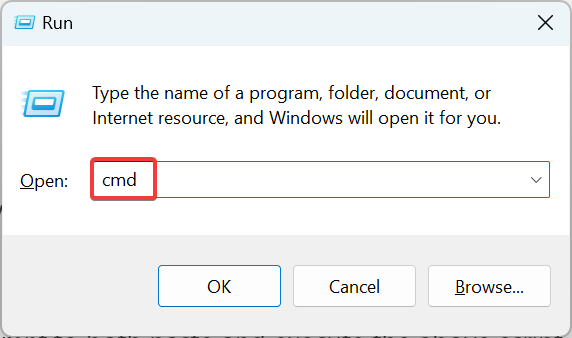 - Press Windows + R to open Run, type cmd, and hit Ctrl + Shift + Enter.